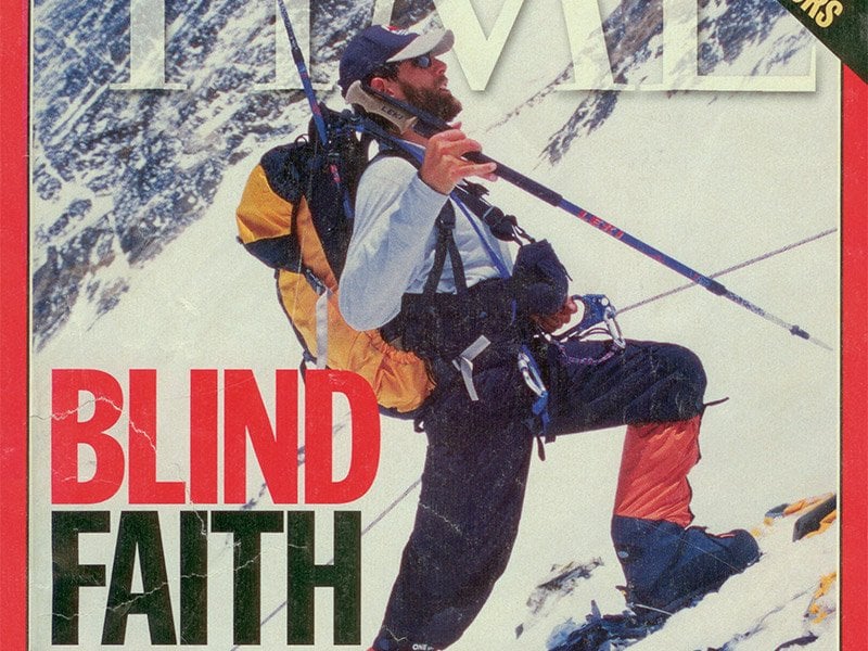 該封面上,出現一個名為Erik Weihenmayer 嘅登山家孭住Osprey Aether 60登珠峰嘅相,而Erik Weihenmayer其實係失明人仕,而該次更係人類歷史上第一次有盲人登上珠峰嘅記錄,突破晒人類嘅極限。隨後幾年仲登埋八大峰,成為一個經典登山者。